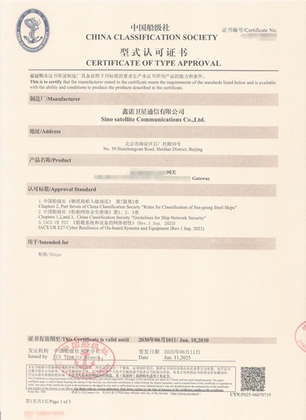- 鑫諾衛(wèi)星通信有限公司自主研發(fā)網(wǎng)關(guān)產(chǎn)品獲中國(guó)船級(jí)社型式認(rèn)可證書(shū)