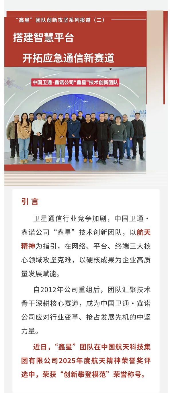- 航天精神榮譽獎 "創新攀登模范"-- 中國衛通鑫諾公司“鑫星”團隊創新攻堅系列報道(二)